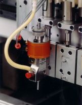 Positive displacement dispensers This type of dispenser is commonly referred to as piston positive displacement because the technology uses a piston to displace material from a chamber (Figs. 3f and 7).To be considered true positive displacement, a dispenser must be designed so material flow is absolutely sealed off during the actual dispensing process. Positive displacement is available in two basic technologies. One is motor-driven and the other is solenoid-driven. The actual models available differ in design by individual manufacturer, but the key to the applications they are used for stems from which method activates the dispenser.Both types of positive displacement dispensers are typically used with medium-to high-viscosity materials, and offer high-volume repeatability regardless of temperature, viscosity, and pressure changes. The actual volume of material dispensed is controlled by the adjustable displacement of the piston entering the chamber. The solenoid-driven version also works with low-viscosity materials when con figured with a special adapter valve. |